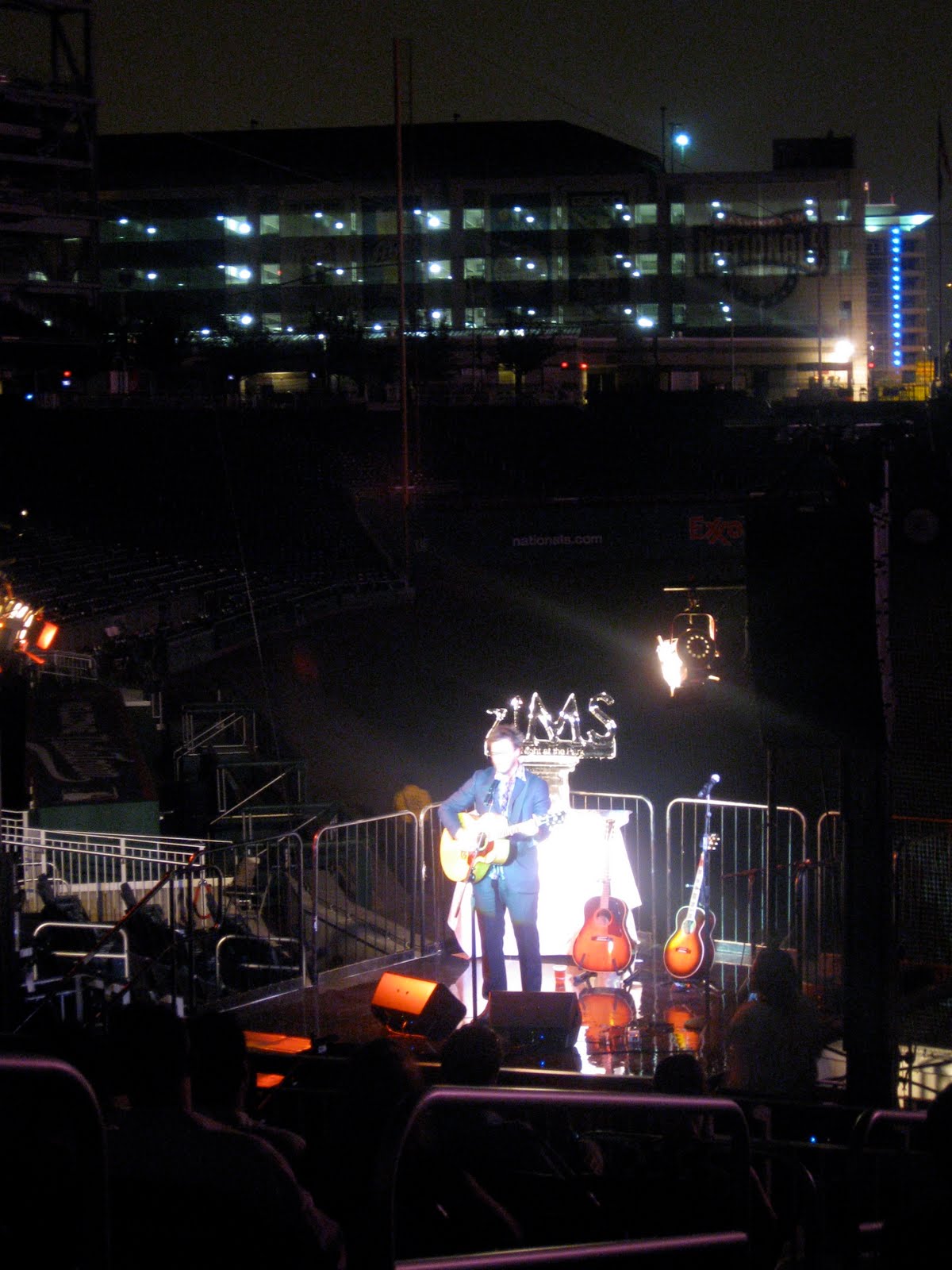 Once the live auction concluded, Mutlu stepped to the stage built on top of the Presidents Club Seats at Nationals Park to perform. The warmup for a wonderful effort by Amos Lee. Joined at times by Mutlu, the Philadelphia born singer-songwriter and guitarist (who Ryan joked earlier was a Philly Fan but he wasn’t going to hold that against him) performed some of his best folksy rhythm and blues. Having never heard Amos Lee before, Sohna and I really enjoyed his effort. Zimmerman so impressed with his work as well, Ryan presented Lee a specially autographed guitar at the end of the evening in thanks.